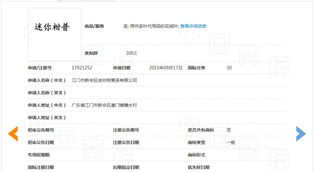 本决定书所涉申请商标中,“柑普”是一种橘红普洱,根据网络检索的资料,柑普茶系采用纯天然的特定种类的柑果和云南普洱茶为原料,在没任何添加剂的情况下,经特殊工艺加工而成,具有健脾养胃、清热解毒、化痰止咳等功效。显然,这是一种典型的行业内的约定俗成的简称,指代的是一种特别的工艺制作的茶叶,传递的仅仅是一种商品品种信息,仅凭该名称,消费者无法明确商品来源,如被某个经营者注册将造成不合理的名称垄断。尽管申请商标并非单纯的“柑普”而是附加了“迷你”二字,但是“迷你+柑普”的组合使用在指定商品上,在认知含义上仍然不易起到区分商品来源的作用,而仍是直接表示了商品的品种名称(即“一种小型的柑普”),因此,不宜被注册为商标。除此之外,这一申请商标还涉及到近似问题。
