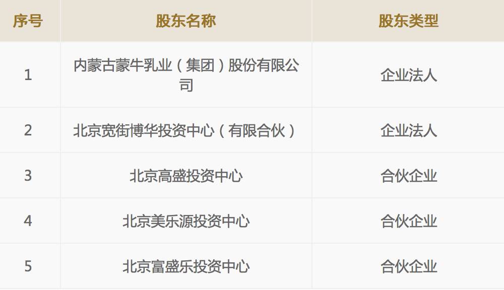 工商资料显示,内蒙古富源国际实业有限公司在2012年成立于呼和浩特市。其中,内蒙古蒙牛乳业集团持股约41%,其他股东还包括北京高盛投资中心等。