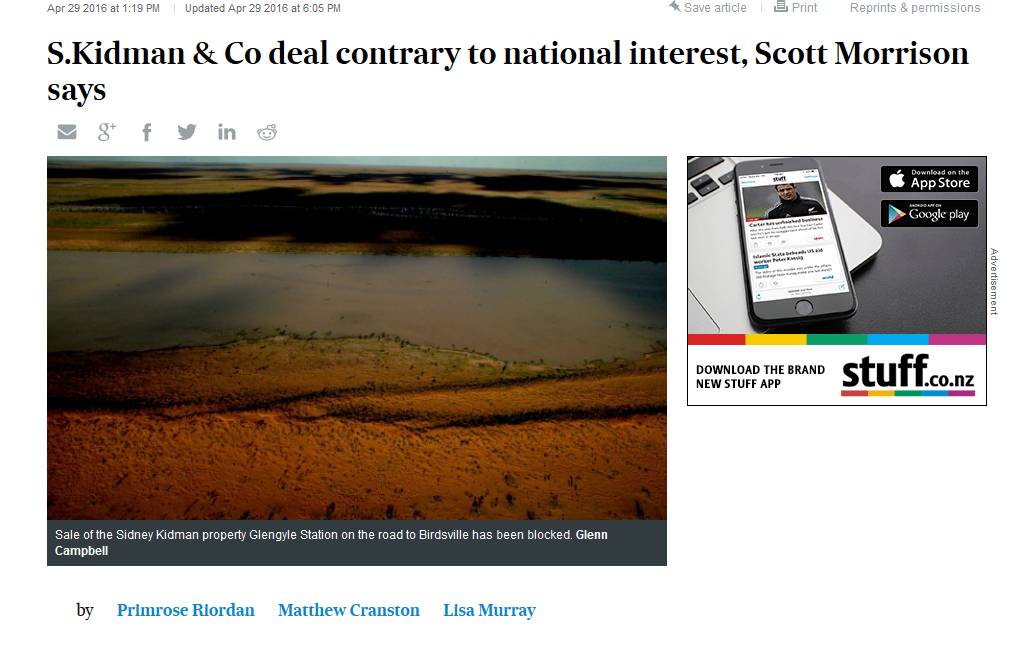 澳媒去年报道,莫瑞信拒绝了由中资主导的对S. Kidman &Co.的收购。