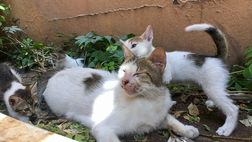 我是在来到这里的第二周才发现,馋嘴的猫咪不是孑然一身,她有5只新生的猫宝宝嗷嗷待哺,我在那一瞬间理解了它之前的种种,甚至有种肃然起敬的感觉。就像知道孤儿院的男孩Feisel身世之后,他的任性、他的霸道在我们心里一笔勾销,只想给他大大的拥抱。这个孩子的母亲丧夫之后寄居兄弟篱下,自己的三个儿子被舅舅的家庭所不容只能送来孤儿院。