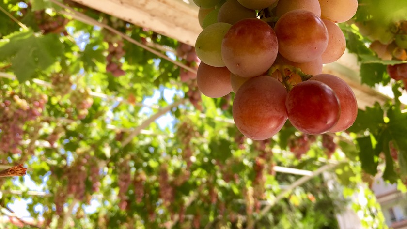 离开时,旅馆的葡萄架上挂满一串串散着甜香的紫葡萄,想起了回程路上司机也恰巧放着阿拉伯著名歌唱家法鲁兹的歌曲《夏天呀夏天》,悠扬的歌词里提到串串葡萄。萨拉赫老师途经一片葡萄园时讲起来家乡的果园,身边的叙利亚司机补充附和,他们最后异口同声地说着“我们会回去的”“会回去的”,那口气似是喃喃的呓语又无比坚定。