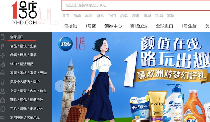 目前,在1号店首页左侧的菜单选择栏,全球进口一项被放在了首行。广告滚动栏的第一页,也以宝洁丹碧丝、欧乐B等进口产品为主做了一条“欧洲出游”主题的商品推荐。在今年7月刚刚结束的1号店9周年活动中,进口商品同比大幅增长超过60%,相比其他品类算是不错的成绩。