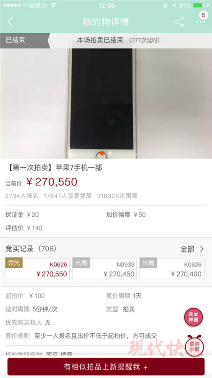 据了解,以秦淮法院拍卖的 iPhone7手机为例,第一次竞拍的价格高达 27.055万元,而这部手机的评估价仅200元。如果第二次拍卖价只有2000 元,那么第一次竞拍后悔拍的车某将要补两次拍卖的差价,即26.855万元。那么,车某会不会面临要补这笔差价的结果呢?