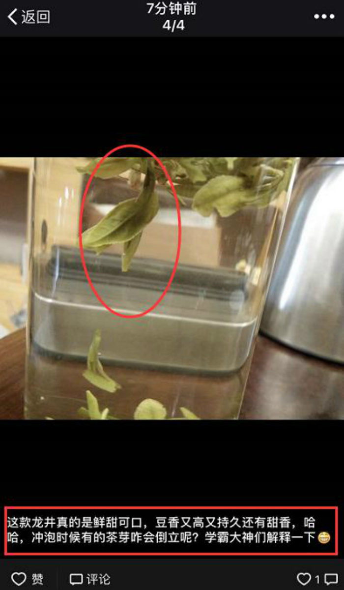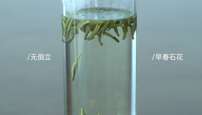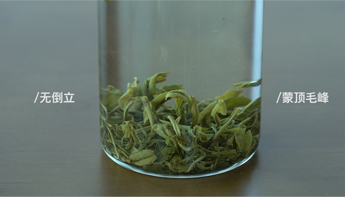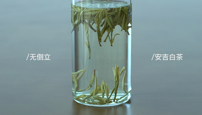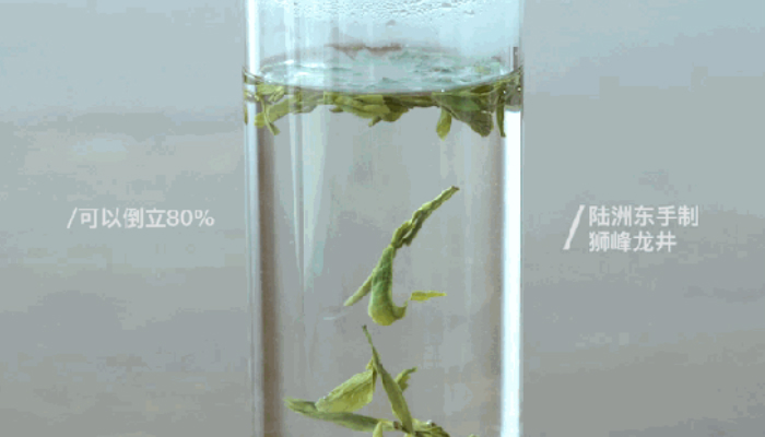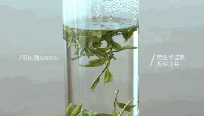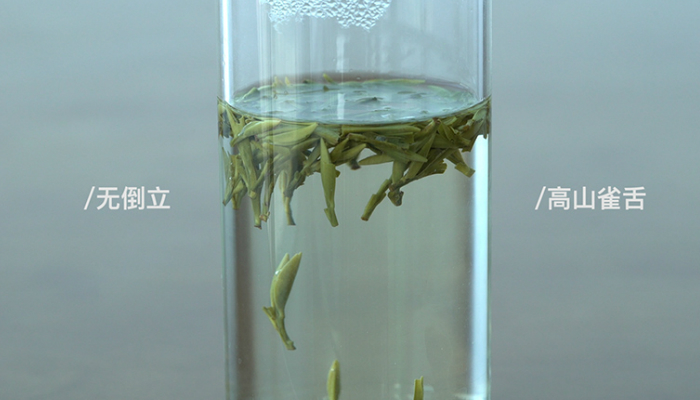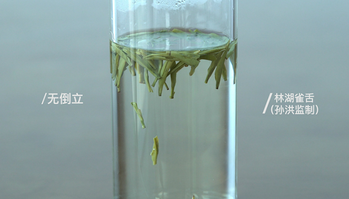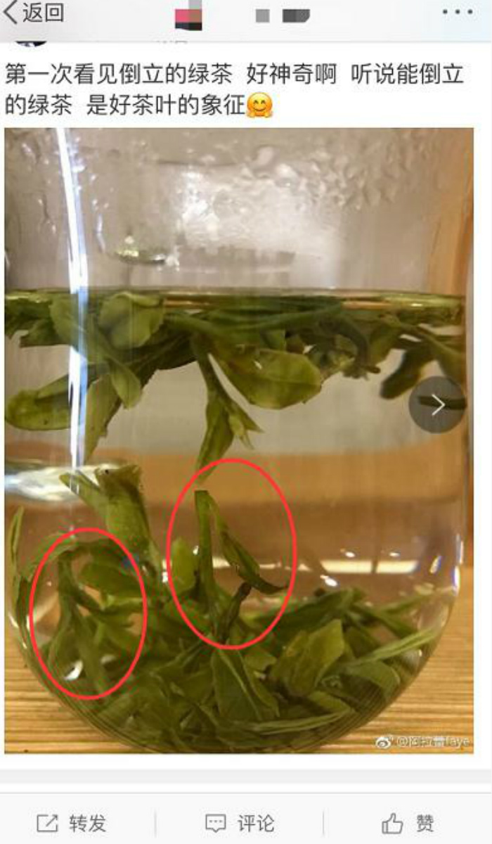 (科普:“茶叶倒立”即沸水冲泡茶叶后,茶叶根在上,芽头朝下,与生长状态相反。)