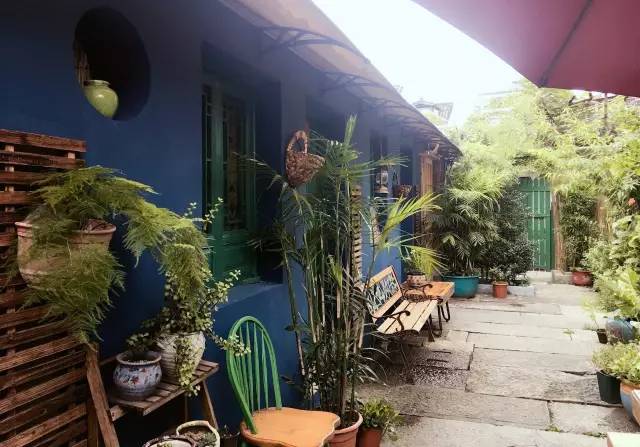 同样将公共空间打扮成花园的,还有明珠。有天突发奇想想玩设计,就自己动手将广宁桥直街的平房改造成了客房、茶室和工作室,起名森绿,大胆用红绿蓝等大色块,茶钱微信付账,数量随意。而她无疑是将自己喜欢的生活投射在民宿里的极致,所以,在经营了大约半年Airbnb后,两间客房干脆让朋友认领了,偶尔邀请同道中人前来小住。