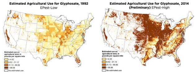 IARC的相关报告显示,草甘膦无处不在。它会渗透入地下水和空气中,甚至存在于食物里,侵入人体内。在过去的十年里,草甘膦的喷洒量显著增加。根据2016年发表在欧洲环境科学杂志上的一项研究,自1996年引入抗草甘膦作物以来,草甘膦的使用量增加了15倍。从1974年起,美国共喷洒了超过16亿公斤的草甘膦。而加强监管可能可以抑制草甘膦的系统过度使用。