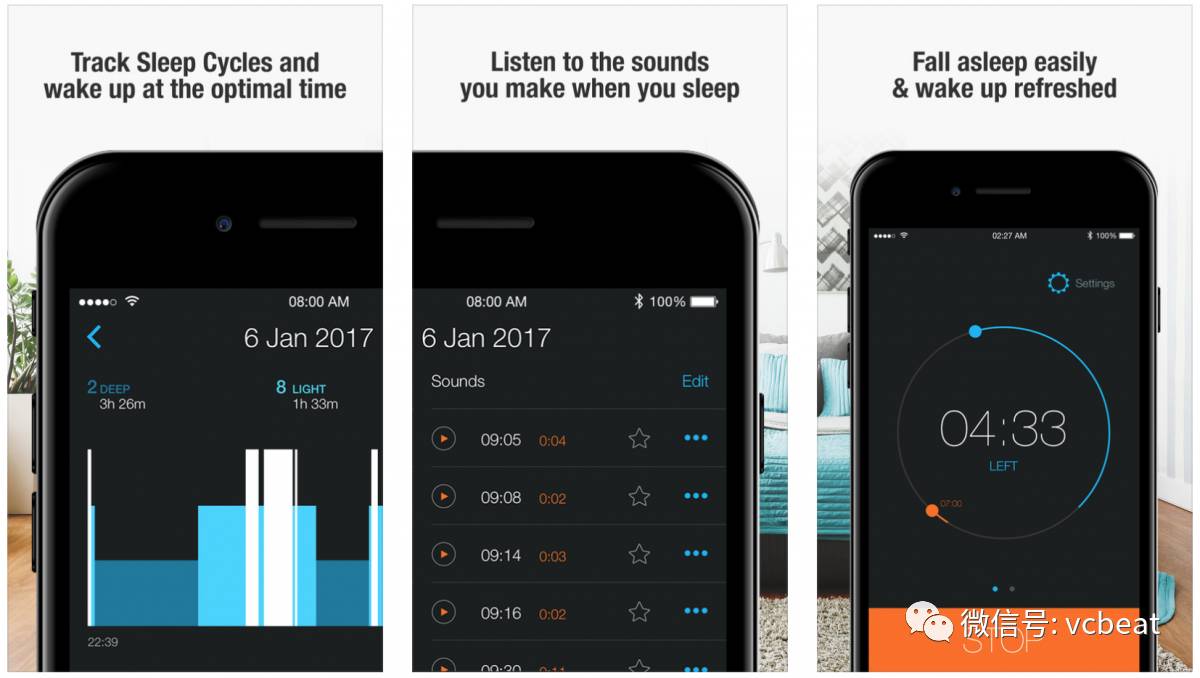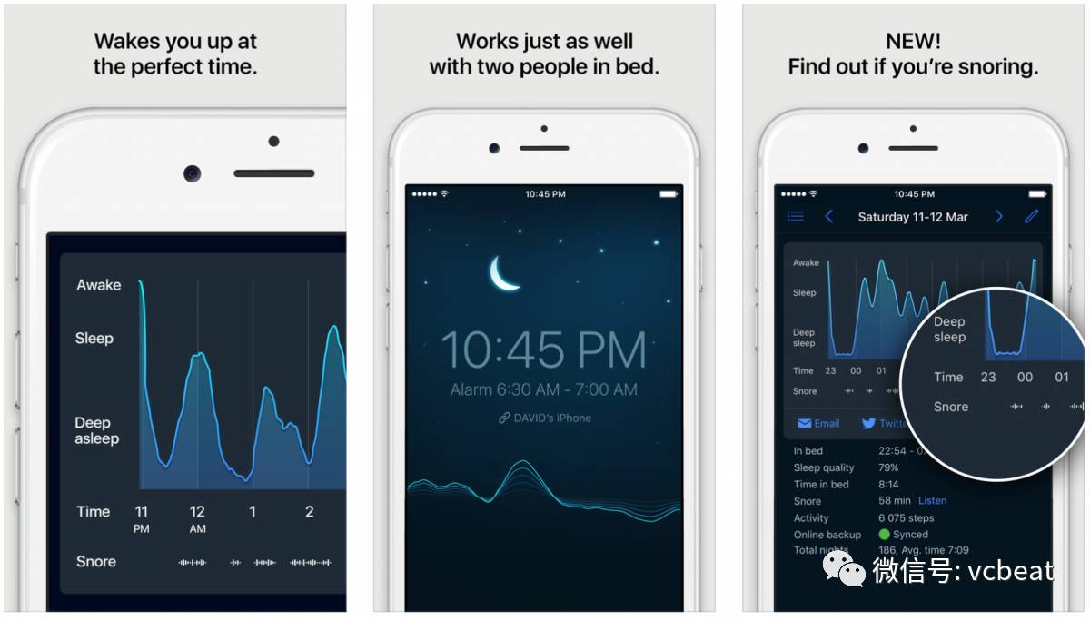 Sleep Better是一家奥地利健身应用公司Runtastic的一款应用,该公司于2015年被阿迪达斯收购。虽然Runtastic制造的是可穿戴的路径,但这个睡眠追踪器只是使用手机本身,用户将手机放在床上靠近枕头的位置,它可以跟踪睡眠时间、周期和效率。