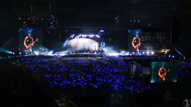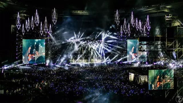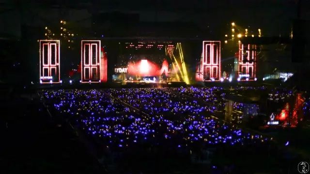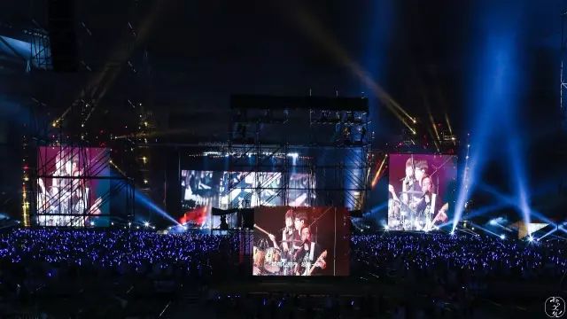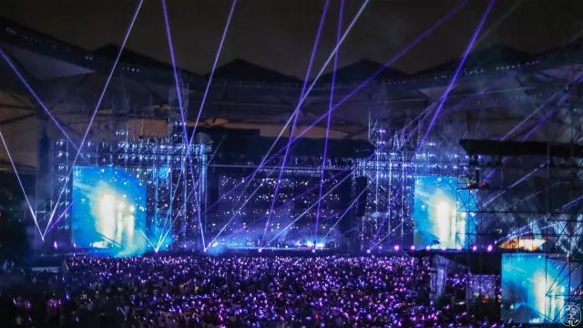 前排的女生突然在演唱会到一半的时候,突然站起来跟着节奏high到了散场。也许这就是演唱会带来的不一样的魅力吧。身临其境的人总是最容易被感动的,看着360度密密麻麻的人,拿着手里的荧光棒,像一个个繁星点点,偶尔做一些“很青春的事”也无可厚非。