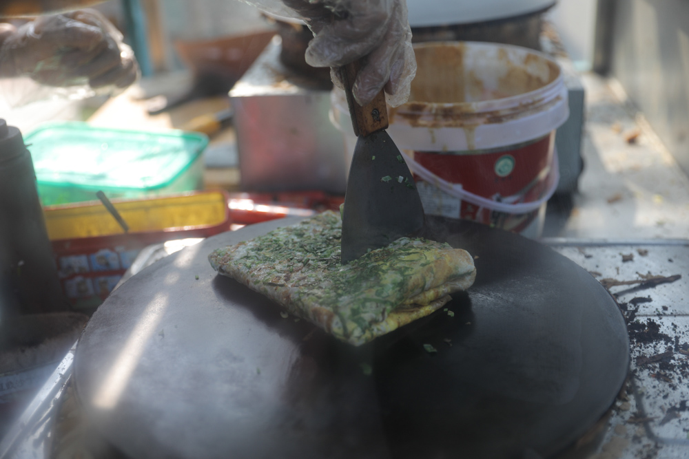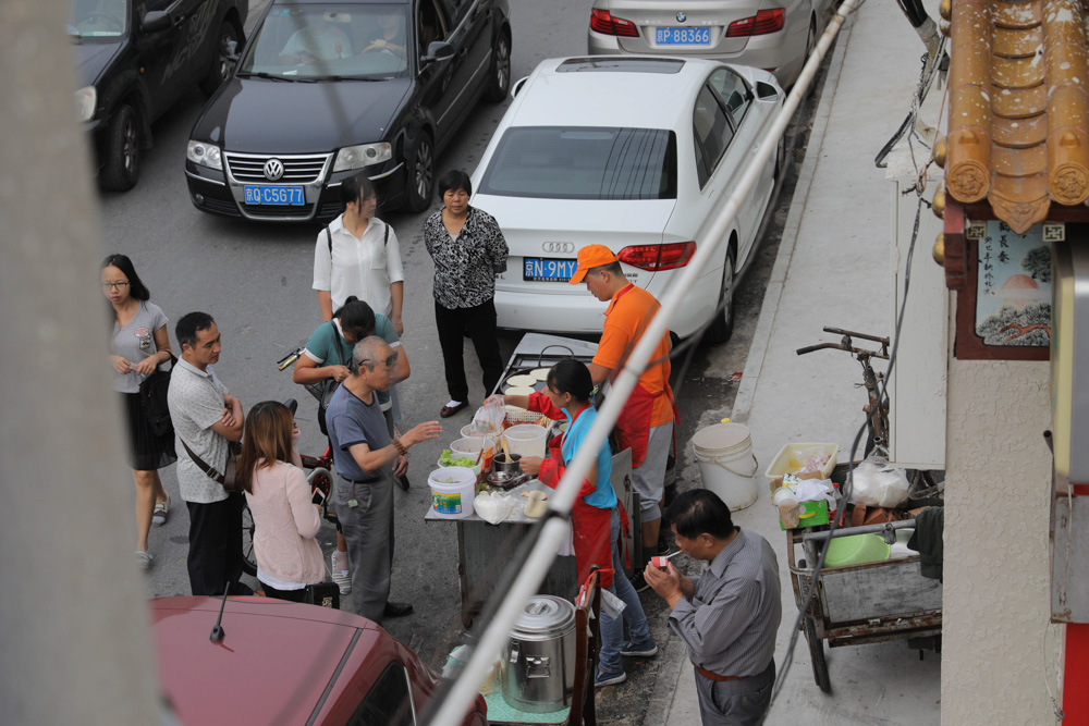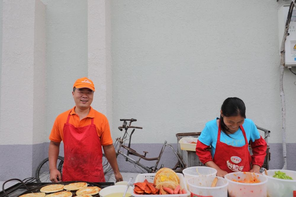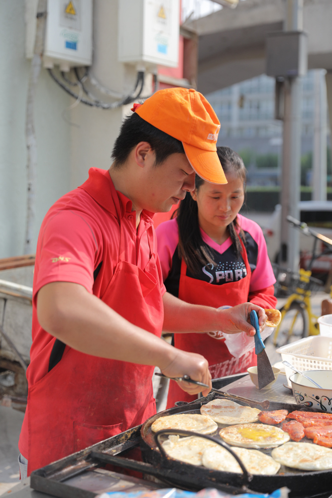 8月30日 9:50 我拍照的时候,有个女生拿着运动相机走过来买煎饼,不停地拍,她刚从国外回来,说开了半箱油的车才找到这一个煎饼摊。