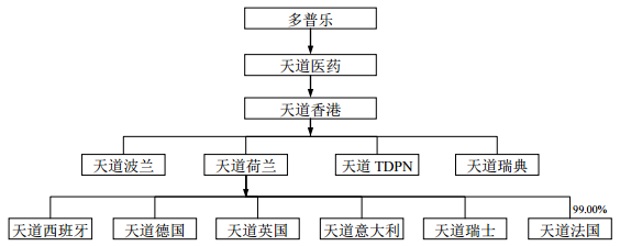 多普乐主要经营活动由其全资子公司深圳市天道医药有限公司(下称天道医药)进行。天道医药成立于2004年,主营业务是依诺肝素钠原料药及制剂的研产销。依诺肝素钠由标准肝素钠原料药制成,是一种低分子肝素类药品,具有预防血栓的疗效。