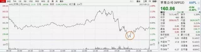 有趣的是,苹果的股价也随着产品的发布进行了有惊无险的波动。十周年献礼的iPhone X一出,股价就拉升至163.53美元,接着,不幸出现了。就是那个让苹果引以为豪干掉Touch ID的Face ID, 号称可以做到百万分之一的出错率的Face ID出错了,把百万分之一的出错率献给了发布会,并把股价又拉低到159.16美元。