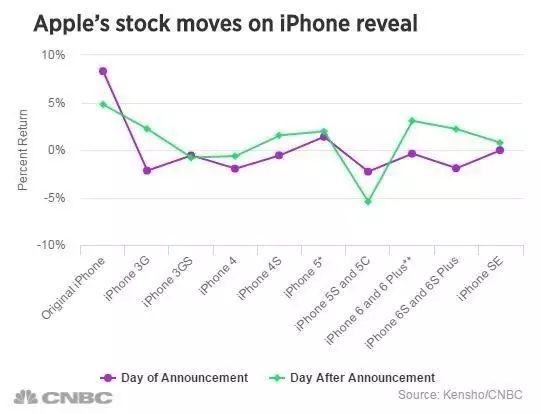 历史总是那么惊人的相似,除了iPhone,iPhone5发布会当天苹果股价有涨,其他新品发布后的当天,股价都难以上涨。在狐哥看来,iPhone和iPhone5在所有iPhone系列的产品中具有革新性,iPhone开启了智能手机的时代,而iPhone5则开启了大屏智能手机时代,优秀的产品足以支撑市场预期。
