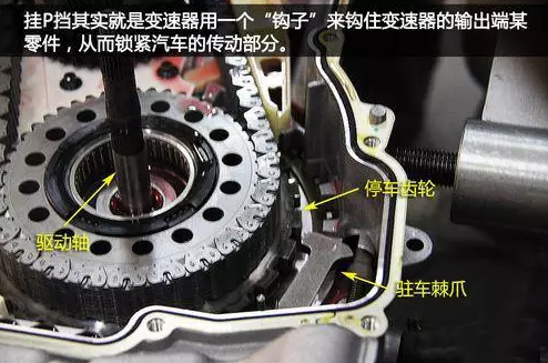 P挡叫驻车挡,是用变速箱的力量制动车,当挂到P挡的时候,自动变速箱中会有一个锁止齿轮,会卡住变速箱。你可以理解为,在变速箱的齿轮上插了一根金属栓子别住齿轮,不让齿轮转动。