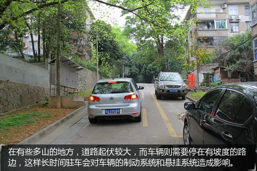 由于受力点不同,这两种方式在坡道上停车就显示出差别了!