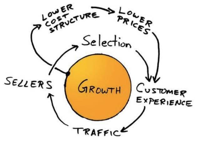 在零售领域,消费者永远都希望拥有更丰富的产品选择、更便捷的服务、更高的性价比、更好的体验,这是永恒的“消费需求”,而这背后则意味着效率的持续优化。(下图为亚马逊战略图)
