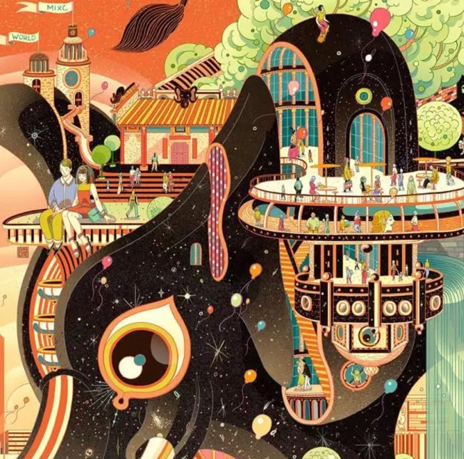 最近,9月27日即将正式开业的深圳万象天地宣布请来插画家倪传婧为其进行商业空间创作,这也是她第一次与商业空间跨界合作。在其为深圳万象花园设计的画面中,充满童趣的建筑被环抱在泡泡和气球中,人们在颜色温柔的奇幻空间中玩耍、发呆、追逐。画中藏了十三只大象,从大象肚子里淌出的水贯穿画面,意为这是个充满灵气的空间。