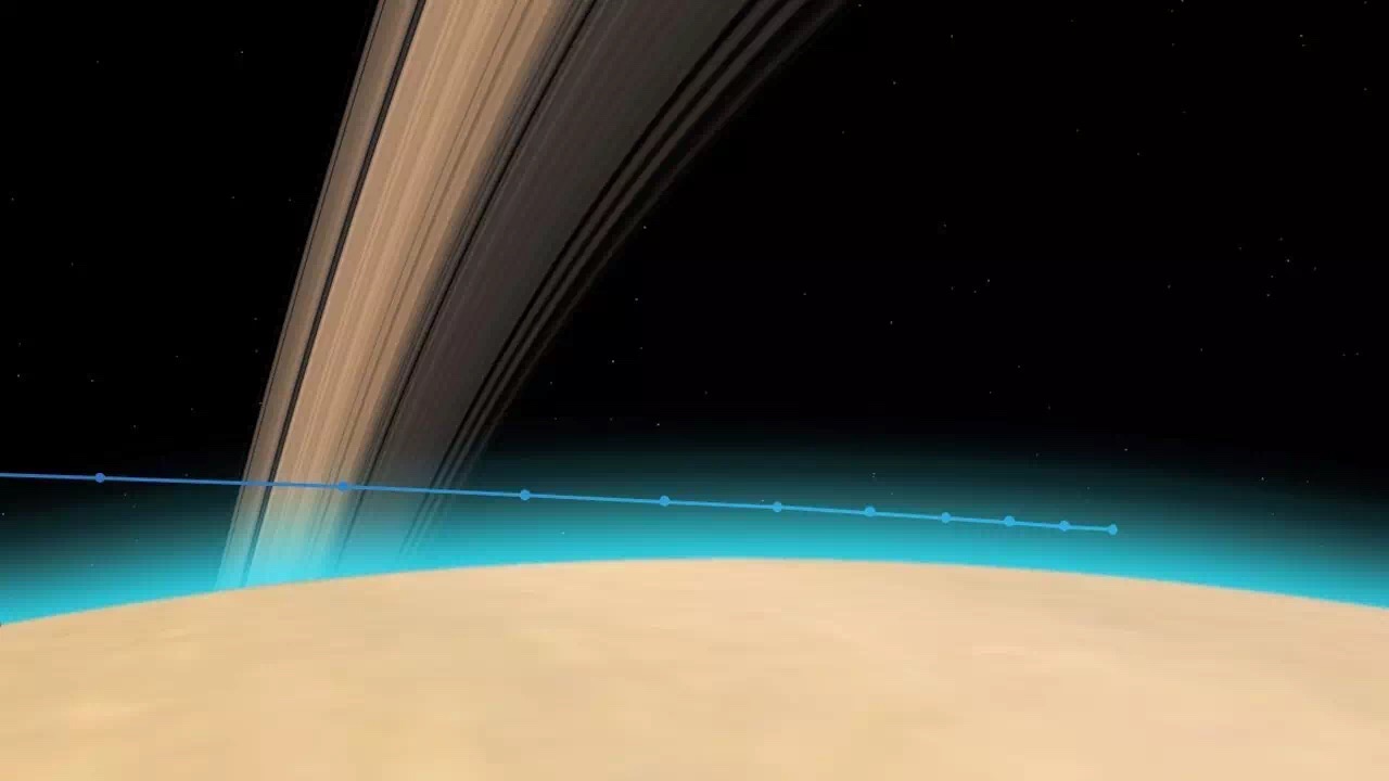 “卡西尼”号将从中纬度地区的某个点开始最后的传输,是在上层大气层,也就是在云顶之上。