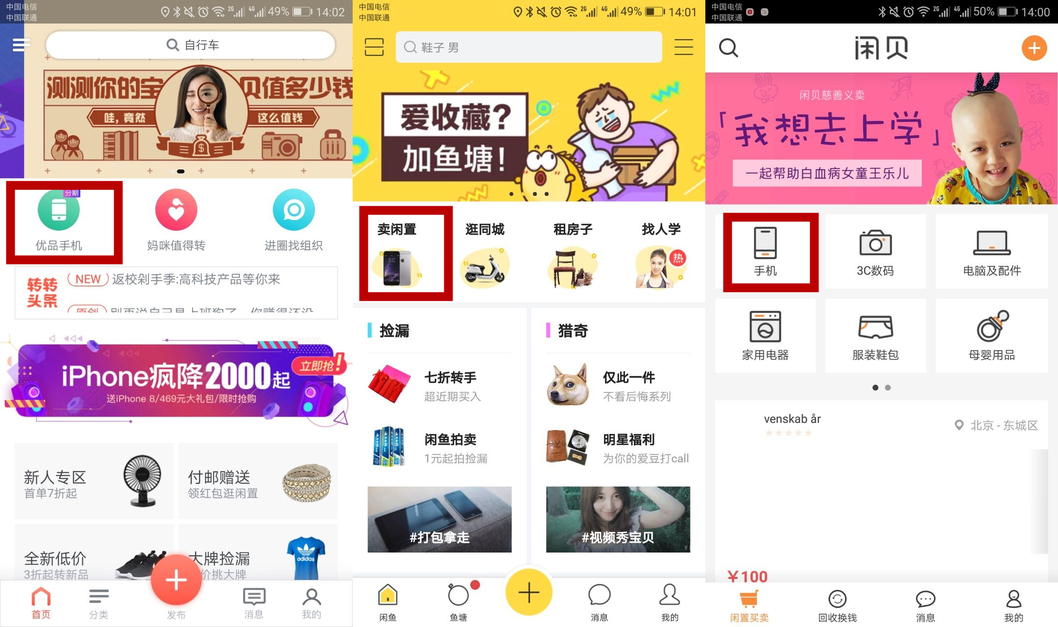 据IDC数据显示,2015年全球二手手机销量为8130万部。我国该市场尚处起步阶段,打开二手电商App的首页我们会发现,无论转转、闲贝,二手手机频道入口全部放置首屏的突出位置,而闲鱼虽然并未特别在首页做二手手机入口,却也应景的为“卖闲置”入口配以手机图案。