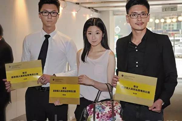 三名艺人(由右至左)黄宗泽、陈自瑶及王浩信于个人资料私隐专员公署投诉遭杂志偷拍