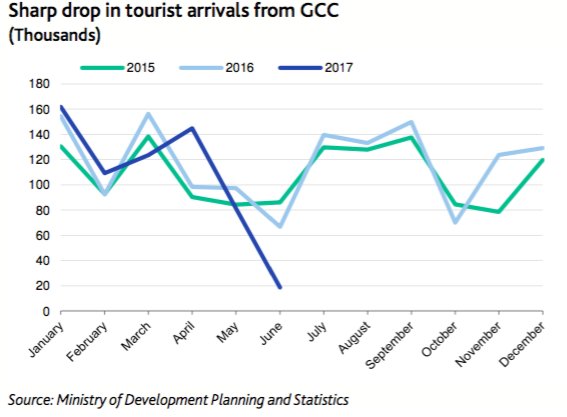 数据显示,期间来自GCC的游客数量下降了超过70%。这导致6月到访旅客总人数同比减少40%。卡塔尔游客总数中的一半来自GCC国家。
