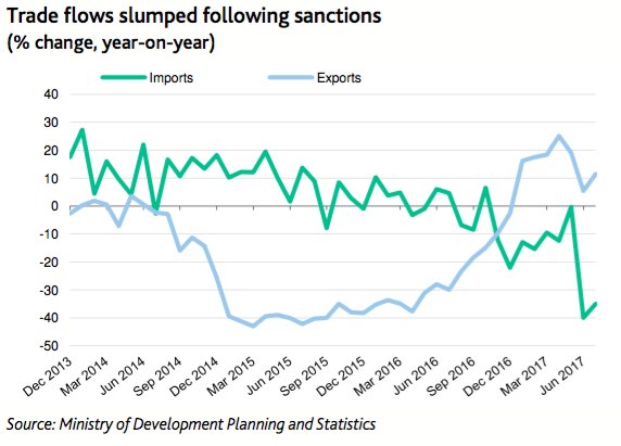 虽然已经与土耳其和伊朗达成了贸易协议,但穆迪预计,卡塔尔现在进口的部分食品、药品要比断交前多支付高达10倍的价钱。7月,卡塔尔食品价格同比上涨4.5%,而断交前的5月为同比下降1.9%。