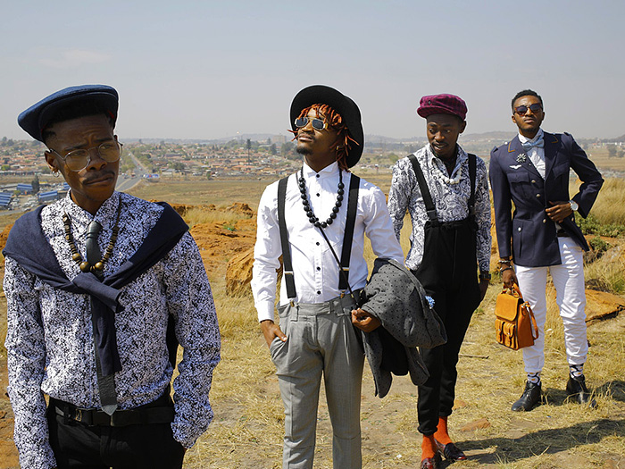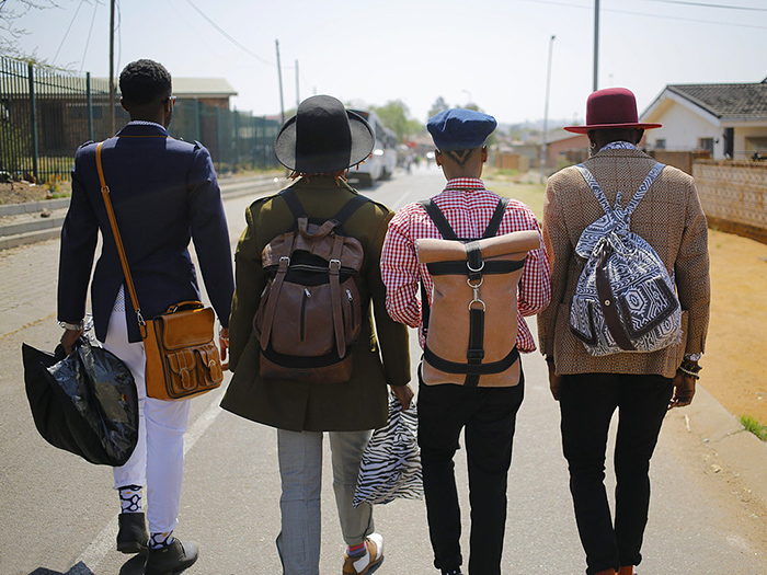 2ba,tumelo”zibstar ' Zibi,Banzo和Mphoz这样用男士夹克和女装混搭也在试图打破性别的刻板印象。他们的目标是不穿品牌化的衣服,而是尽量少花钱穿出独一无二的时尚品味。