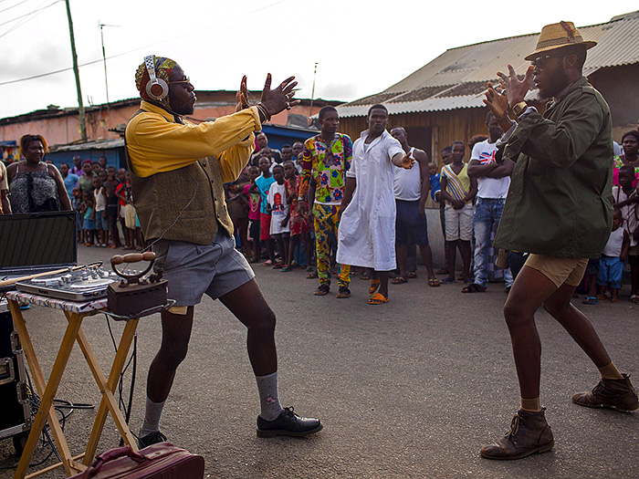 DJ Evans Mireku Kissi进行街头表演。