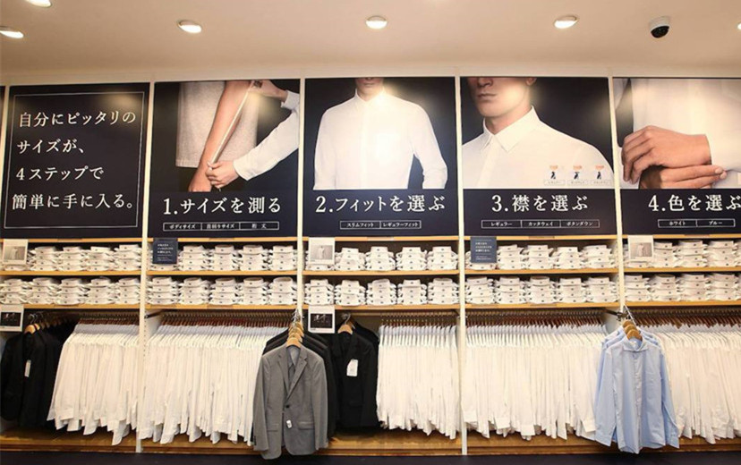 所谓的“半定制商品”,就是指顾客可以在店内对半成品的服装进行挑选,然后根据自己的喜好,调整衣服尺寸、颜色、以及一些诸如衣领、袖口等细节处的长短,最后买到最适合自己身材的衣服。