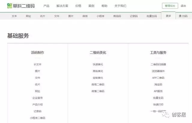 这个网站主要有三大功能,二维码制作,二维码美化,二维码工具服务,咱们用的最多的也就是二维码制作,可以制作文本、图片、文件、名片、网址、微信等二维码。