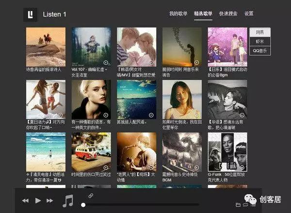 不过如果你在 Chrome 上安装了这款名为 Listen 1 的插件,妈妈可是再也不用担心你找不到想听的歌了。它将 QQ 音乐、网易云音乐以及虾米音乐的音乐资源“整合”在了一起,你只需要输入音乐关键词,就可以方便地三大曲库中跳转搜索。