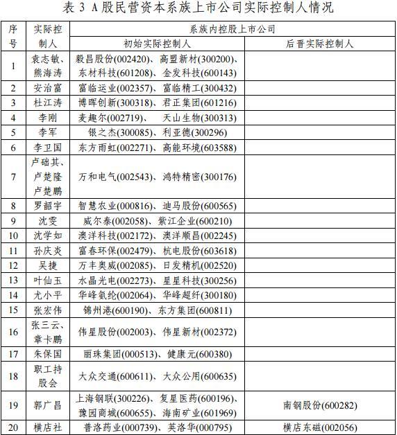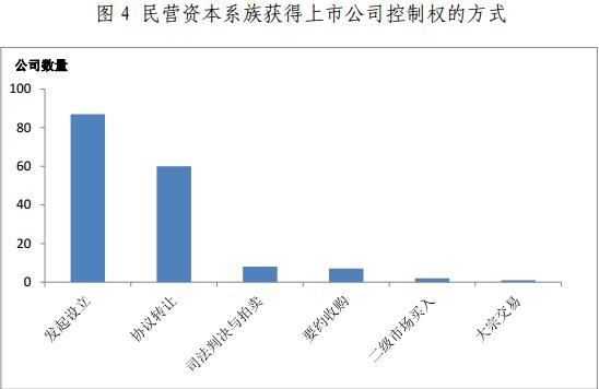 通过资本运作和扩张并进而控制多个上市公司,组成关联的、金字塔形状的资本系族,是一些企业集团快速成长的重要途径。从表3中可以看到,本报告梳理的76个民营资本系族中,有51个系族的实际控制人为系族内至少一家上市公司的初始实际控制人,其中有18个系族的实际控制人是系族内所有上市公司初始实际控制人。其余25个系族则完全通过股份受让、并购重组等方式获得系族内上市公司控制权。