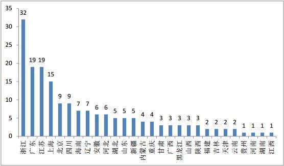 图1:民营资本系族上市公司的省份分布情况