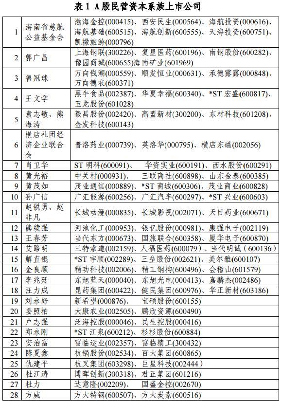 上交所资本市场研究所研究员邢立全发布研究报告《A股资本系族:现状与思考》,统计发现,截止2017年2月7日,深沪两市共有各类资本系族178个,涉及上市公司1045家,占同期A股上市公司总数的33.8%。其中,国有控股的资本系族101个,涉及上市公司866家,大部分为国务院国资委和地方国资委控股;民营控股的资本系族76个,涉及上市公司179家,家族控股占绝大多数,少数由集体企业或职工持股会等实体控股。