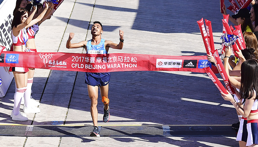 北京时间9月17日,2017北京国际马拉松鸣枪开跑。经过两小时的争夺,来自摩洛哥的选手萨拉赫·博纳瑟尔率先冲过终点,以2小时11分16秒夺得男子组冠军。女子组冠军由埃塞俄比亚选手贝耶内摘得,成绩为2小时27分43秒。