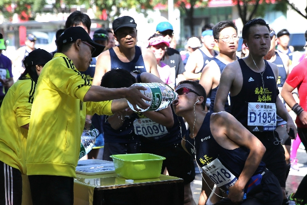 赛事服务上,北马也进行相应完善。全程共设立15个饮料、饮水、能量补给站,包括防止抽筋的盐丸、能量胶也出现在补给品中。此外,固定医疗点、移动医疗求助服务、沿途医疗服务志愿者的设置,也为参赛选手的安全提供了保障。组委会还分别在赛道的8.5公里、13公里、17公里、22公里、26公里、29.5公里、32.5公里、35.5公里、37公里、39.5公里共计10个位置,设置了临时喷淋设备,以应对高温天气。