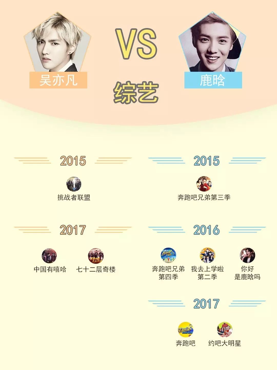 近几年,中国综艺市场已经被真人秀完全占领,作为潮流的代表,吴亦凡和鹿晗也被各大综艺争相邀请,二人作为常驻嘉宾参加的综艺节目中,既有台综也有网综,既有全明星阵容也有明星+素人的模式。