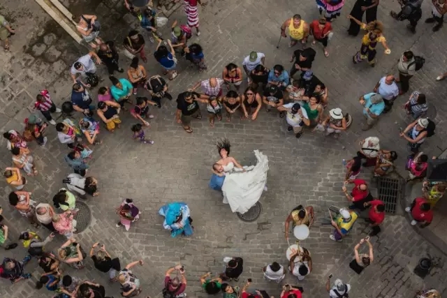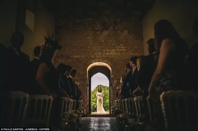 作为一种传统,这张照片捕捉下了婚礼宾客将米洒向新娘和新郎的瞬间。
