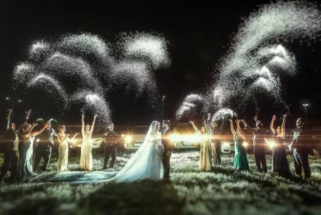 照片里的火花创造出一种奇妙而浪漫的感觉。