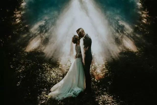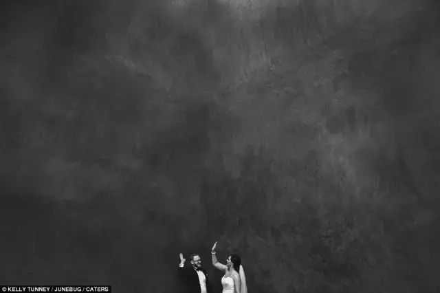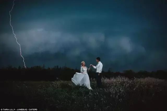 在这张不同寻常的照片中,一道闪电闯入毫无防备的新娘新郎的二人世界。