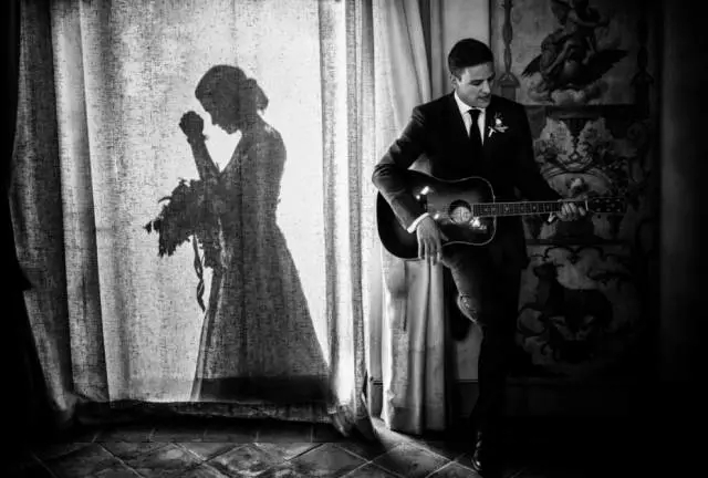 新郎和新娘的剪影构成了这张浪漫的照片。