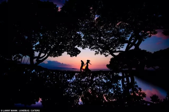 这张绝妙的照片使这对新人看起来像是在水上行走。