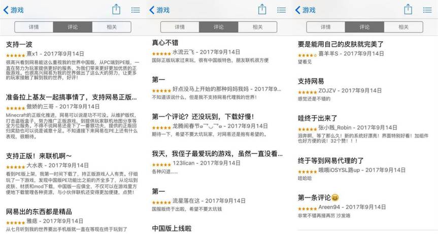在今天正式登陆iOS的《我的世界》手游,一上线获得了苹果编辑的多个推荐,首页大图推荐、游戏类大图推荐、最佳更新游戏推荐等,可见苹果对这一款游戏的关注和喜爱。《我的世界》手游上线10小时内,登顶App Store iPad游戏类免费下载榜第1,iPhone游戏类免费下载榜第4。玩家对它的评价也颇高,“很高兴网易为我的世界做了这么大的努力”、“支持正版”、“准备拉上基友一起玩”、“朋友联机很方便”、“对网易还是抱有希望的”等评价都位列其中。