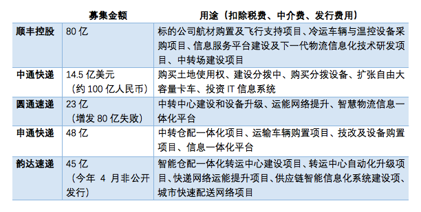 值得注意的是,圆通的募集资金已用完,面临较大的资金压力。圆通于去年10月借壳上市成功,曾在去年12月计划增发85亿元,由于监管机构调整政策宣告夭折,其85亿元主要用于: