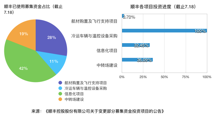 截止2017年7月18日,冷运车辆与温控设备采购项目已投资2.9亿元,计划减少该项目募集资金投入4.3亿元,并将之投入至信息化建设项目。此外中转场建设项目也减少募集资金投入19亿元,转投入信息化项目,意在通过信息化建设提升综合供应链的能力。