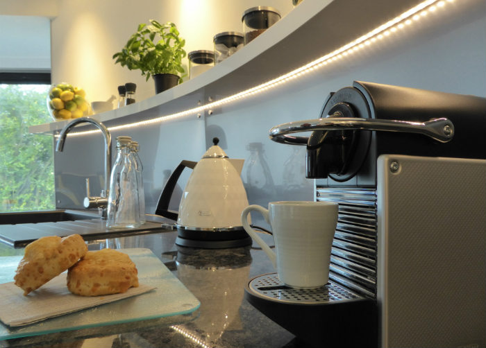 这家“豆荚”酒店事实上只有位于顶部的一个房间,而在观景台之外,房间还包括两个卧室、一个客厅、一个半开放式厨房,一个带有宽大浴缸的浴室及卫生间。为了配合呈圆形的灯塔内部空间,地板、楼梯、床具以及其他大部分布置和家具都是特别定制的,在质朴低调的木质陈设中混搭有色彩亮丽的金属摇滚风。主人也不忘在屋内配上滴滤咖啡壶外加Nespresso的胶囊咖啡机,方便人们随时端一杯好咖啡坐在窗前,静静欣赏窗外草长莺飞的安详景致。