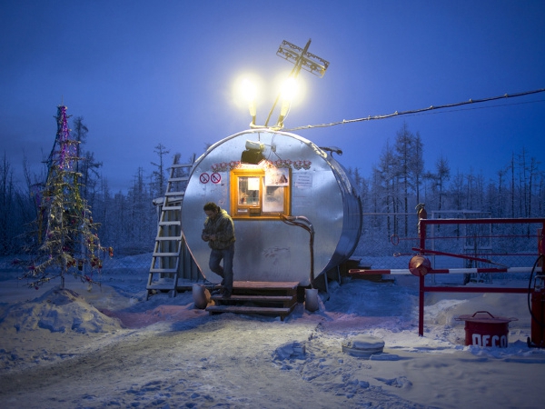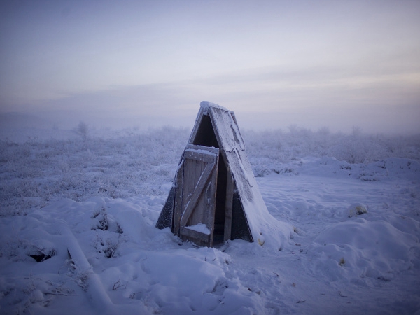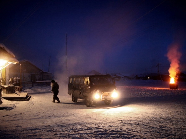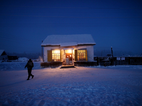 Chapple 发现他在这里很难遇到人,因为这里的人大多都飞快地从一个温暖的地方跑到另一个暖和的地方。那些愿意和他聊天的人都警告他别酗酒过度,尤其是在放假的那几个月。奥米亚克镇的天气也考验着 Chapple 的相机。