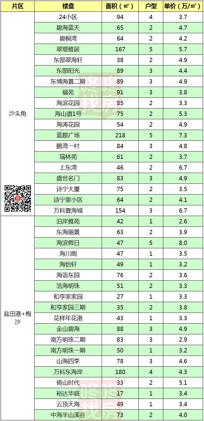 沙头角片区是盐田区3个小片区中成交最为活跃的片区,该片区主要是以住家改善的区域,片区内环境较好,背山面海。周边配套也比较齐全。