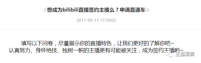 一直低调的B站直播这次开通了主播申请签约直通车,作为国内最优秀的二次元站,B站培养了纳豆、少寒等出色主播,此次开通签约直通车或许暗示B站将大规模签约优秀主播、着力发展直播项目。