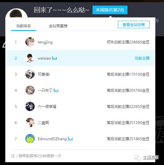 上周上升最快主播-韦神