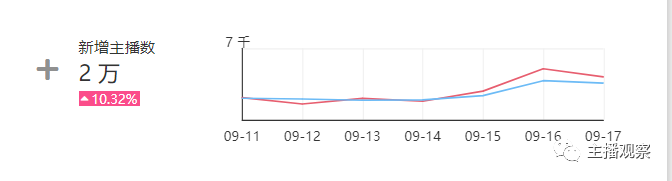 如图,上周B站在9.16和9.17周末两天有大批新主播入驻,导致B站的新增主播数同比增长10%。